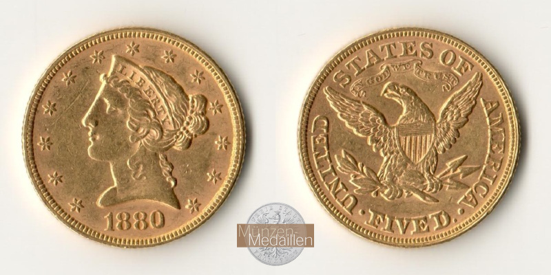 5 Dollar 1880 (Philadelphia) "Half Eagle - Liberty Head"