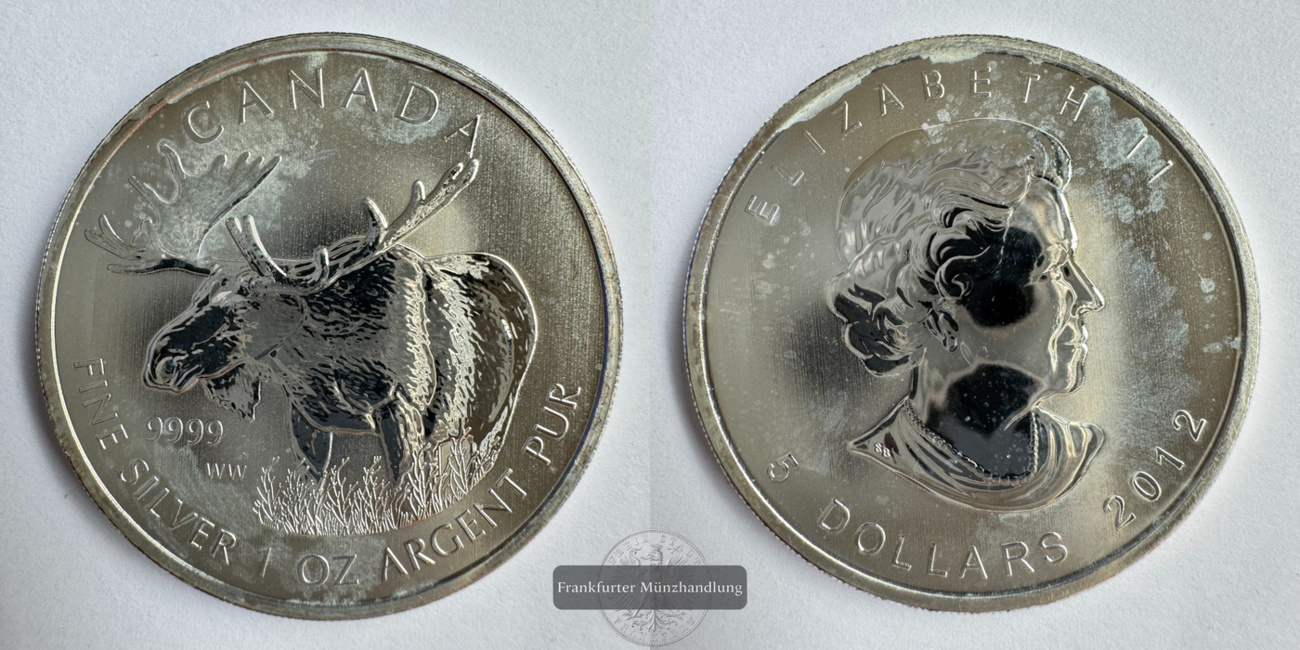 KANADA. Elch 2012, 5 Dollar 1 OZ (Unze) FM-Frankfurt, Feinsilber: 31,1g