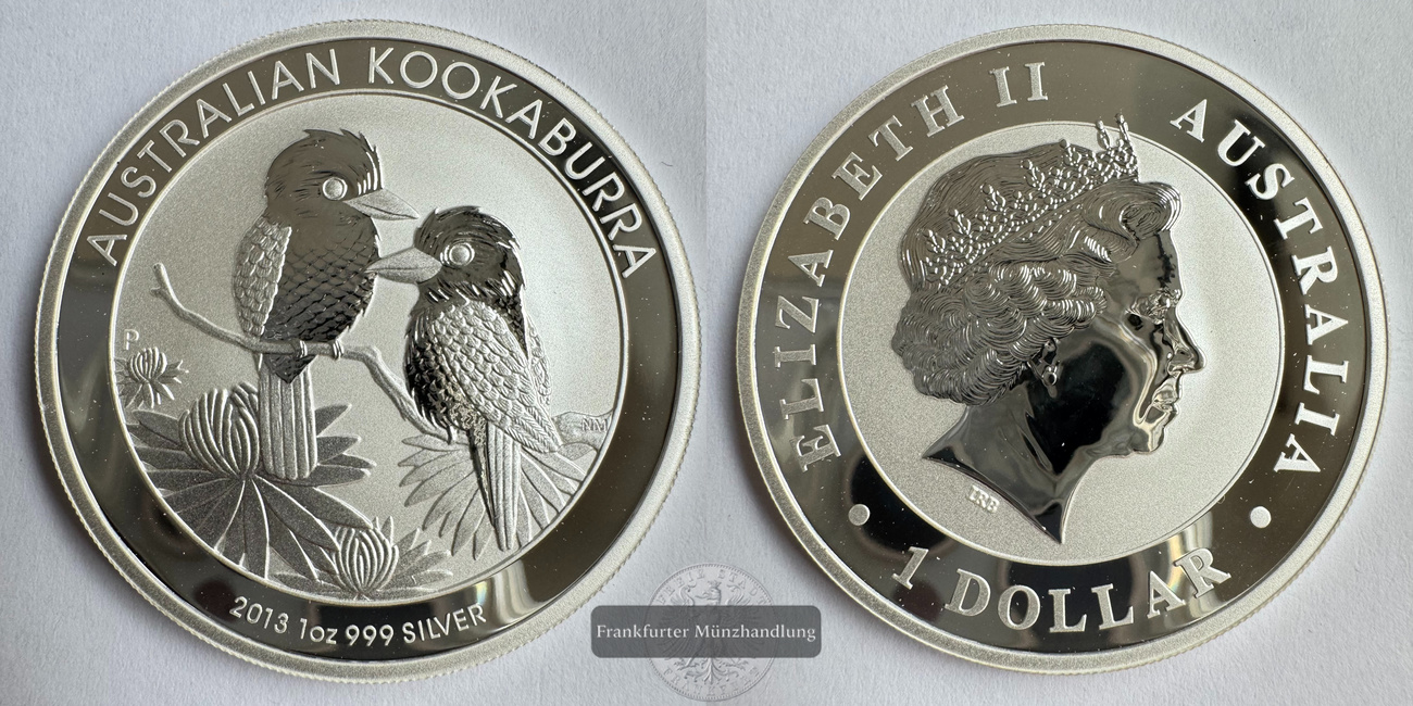 AUSTRALIEN. Kookaburra 2013, 1 Dollar 1 OZ (Unze) FM-Frankfurt, Feinsilber: 31,1g