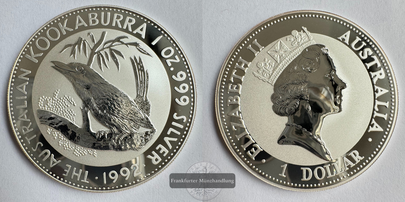 AUSTRALIEN. Kookaburra 1992, 1 Dollar 1 OZ (Unze) FM-Frankfurt, Feinsilber: 31,1 g