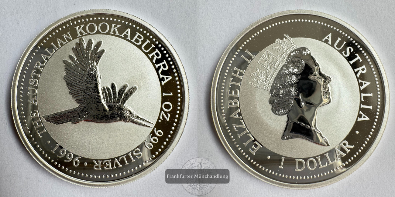 AUSTRALIEN. Kookaburra 1996, 1 Dollar 1 OZ (Unze) FM-Frankfurt, Feinsilber: 31,1g