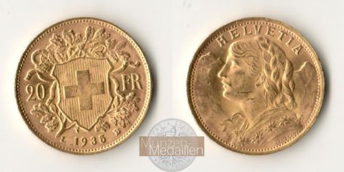 20 Franken L 1935 B (Bern) "Vreneli"