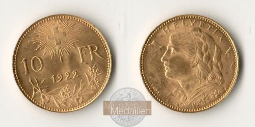10 Franken 1922 B (Bern) "1/2 Vreneli"