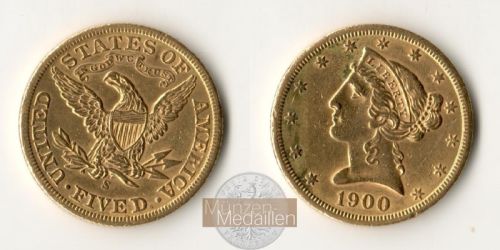 5 Dollar 1900 S - San Francisco "Half Eagle - Liberty Head"