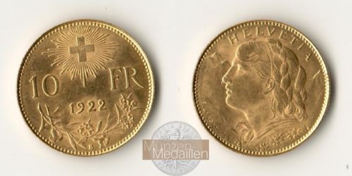10 Franken 1922 B (Bern) "1/2 Vreneli"