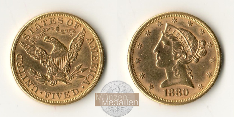 5 Dollar 1880 (Philadelphia) "Half Eagle - Liberty Head"