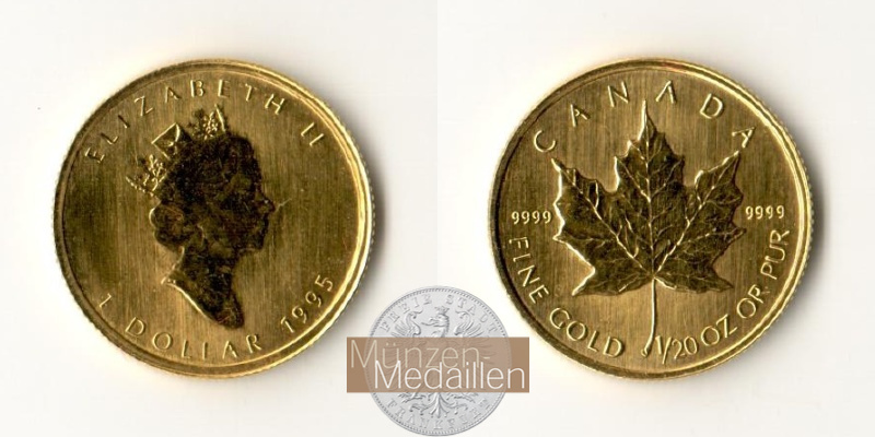 KANADA, parl. Monarchie (unabhängig seit 1931). 1 Dollar 1995 "Maple Leaf". 1/20 Unze, 1,56 gr. Feingold