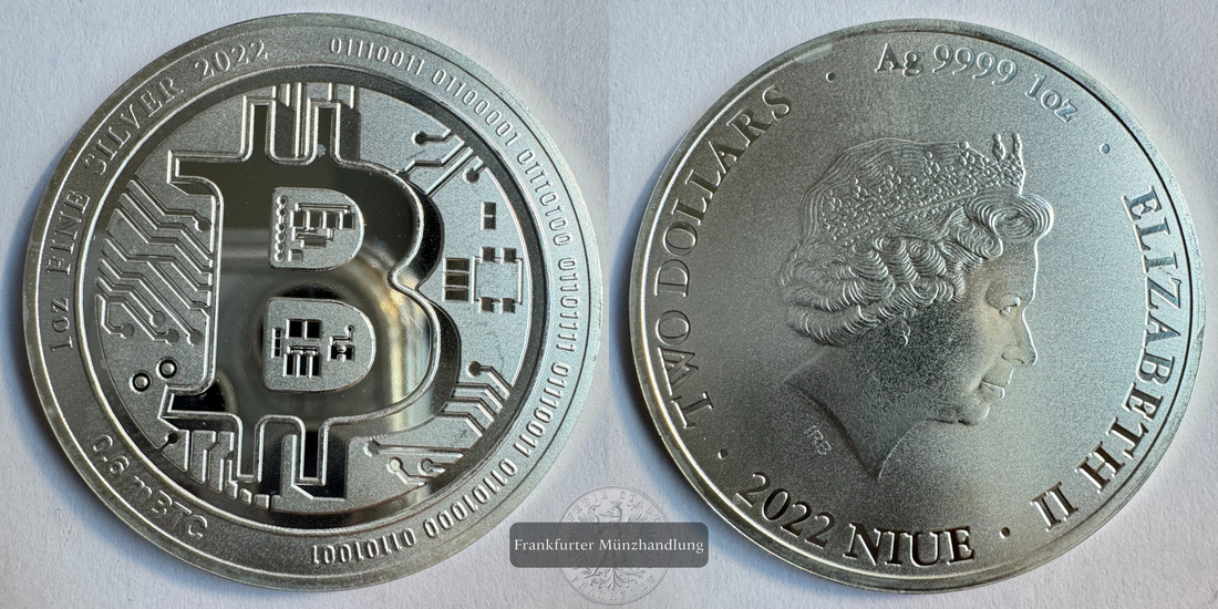 NIUE. "Bitcoin" 2022, 2 Dollar 1 Unze FM-Frankfurt, Feinsilber: 31,1g
