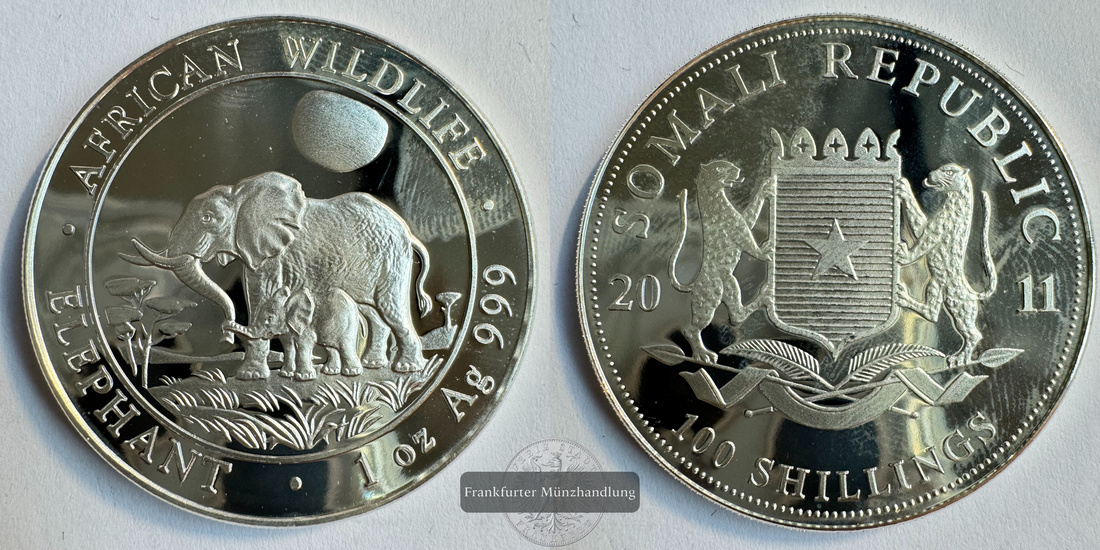 SOMALIA. Afrikanische Tierwelt - Elefant 2011, 100 Shilling 1 Unze FM-Frankfurt, Feinsilber: 31,1g