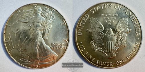 USA. American Silber Eagle 1987, 1 Dollar 1 Unze FM-Frankfurt, Feinsilber: 31,1 g