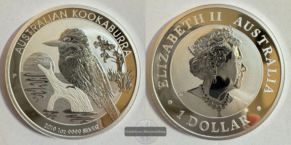 AUSTRALIEN. Kookaburra 2019, 1 Dollar 1 Unze FM-Frankfurt, Feinsilber: 31,1g