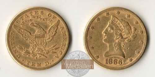 10 Dollar 1886 S - San Francisco "Half Eagle - Liberty Head"