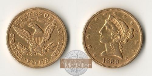 5 Dollar 1880 (Philadelphia) "Half Eagle - Liberty Head"