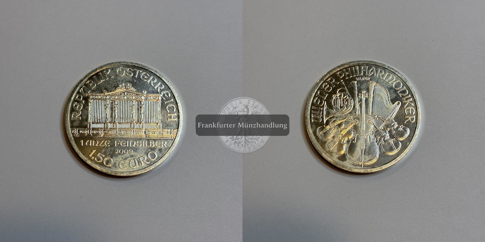 ÖSTERREICH. Wiener Philharmoniker 2009 1,50 Euro 1 Unze FM-Frankfurt, Feinsilber: 31,1 g