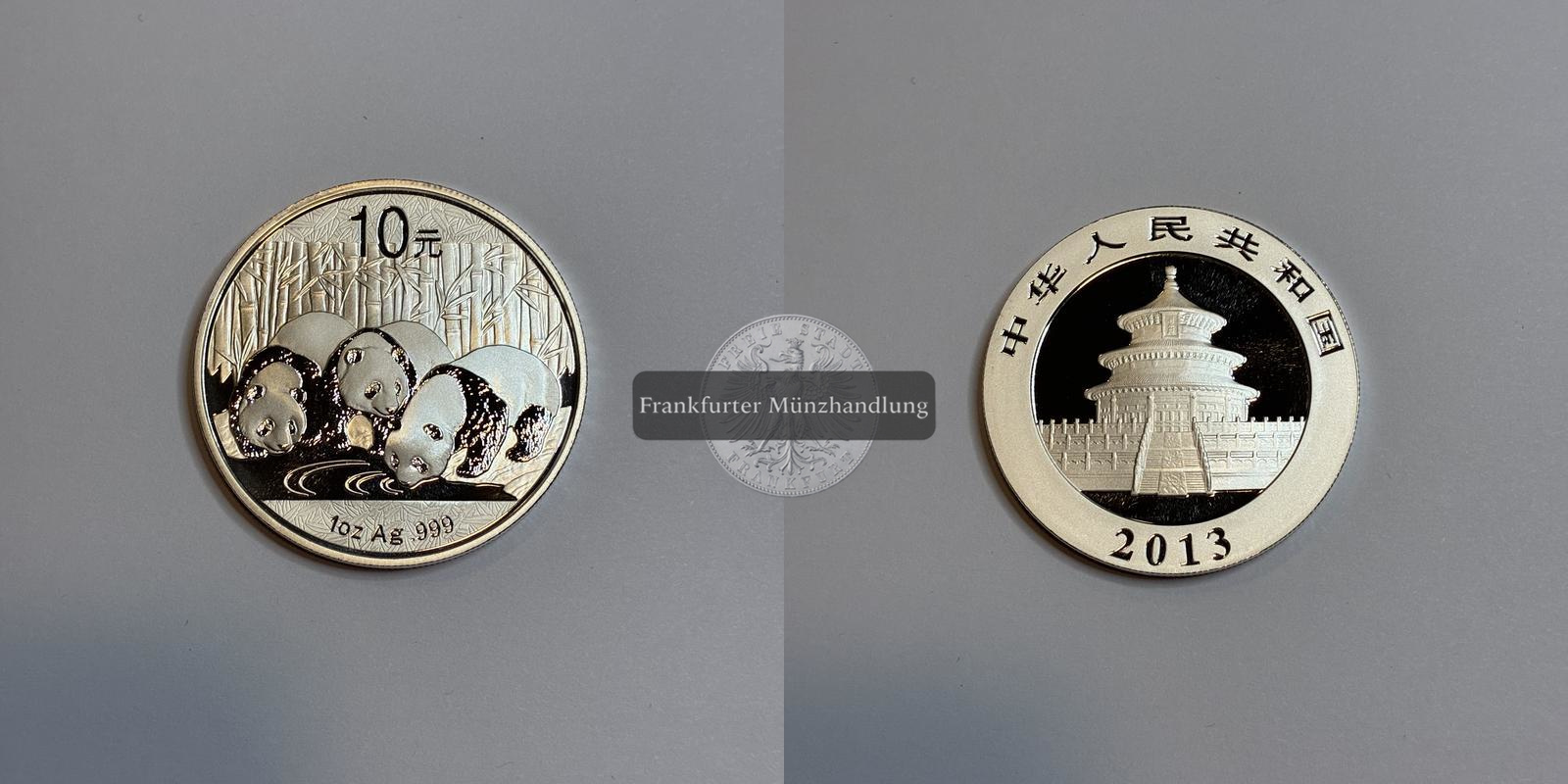 CHINA. Panda 2013, 10 Yuan 1 OZ Unze FM-Frankfurt, Feinsilber: 31,1g