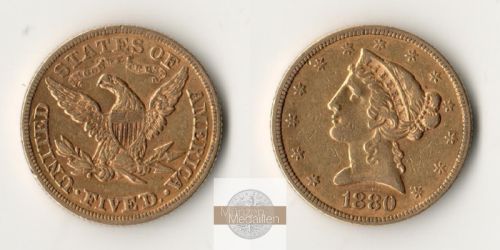 5 Dollar 1880 (Philadelphia) "Half Eagle - Liberty Head"