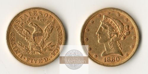 5 Dollar 1880 (Philadelphia) "Half Eagle - Liberty Head"