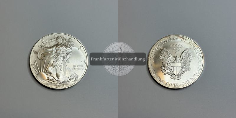 USA. American Silber Eagle 2010, 1 Dollar 1 Unze FM-Frankfurt, Feinsilber: 31,1 g
