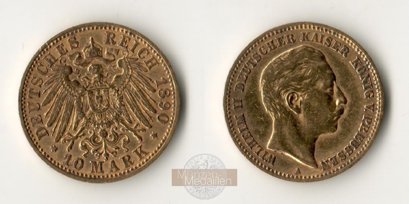 DEUTSCHES KAISERREICH. PREUSSEN, Wilhelm II., 1888-1918. 10 Mark 1890 A. 3,58 gr. Feingold