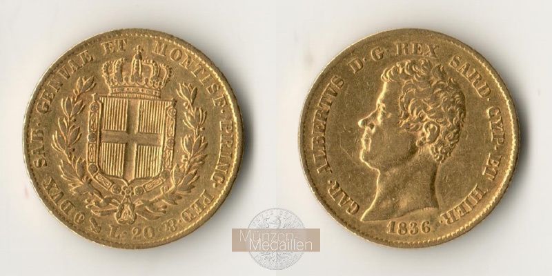 20 Lire 1836 P (Anker) - Münzstätte Genua