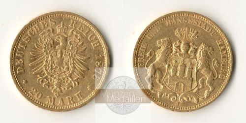 20 Mark 1876 J - Münzstätte Hamburg