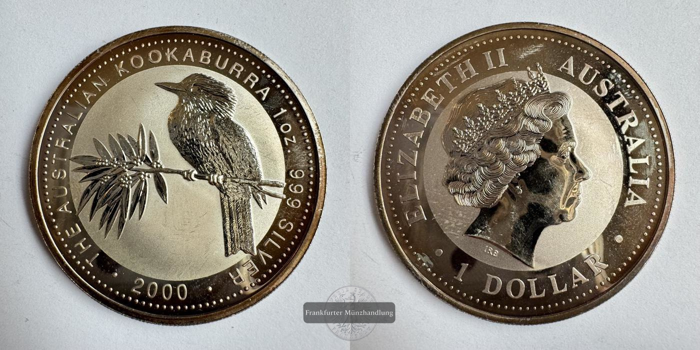 AUSTRALIEN. Kookaburra 2000, 1 Dollar 1 Unze FM-Frankfurt, Feinsilber: 31,1g