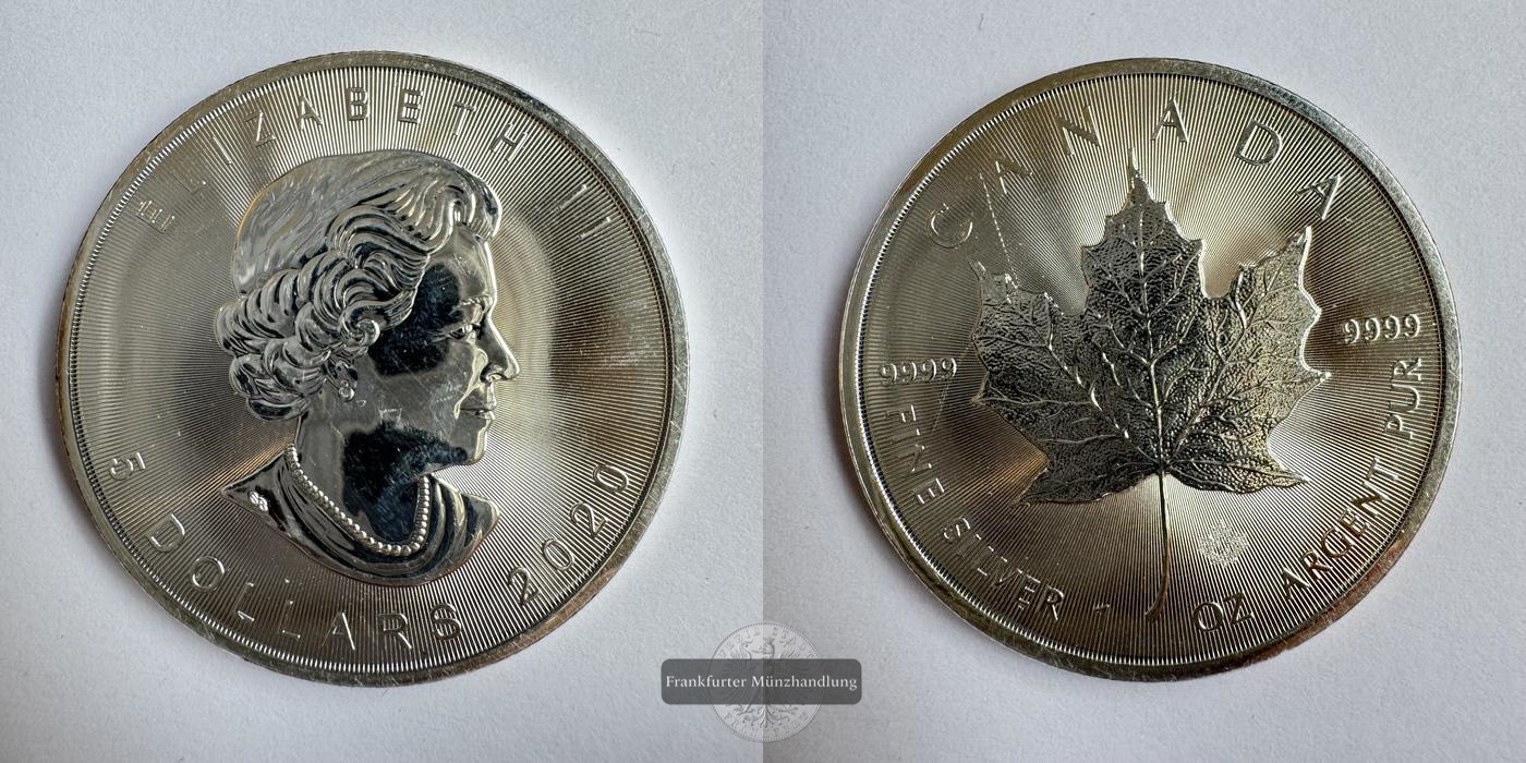 KANADA. Maple Leaf 2020, 5 Dollar 1 Unze FM-Frankfurt, Feinsilber: 31,1 g