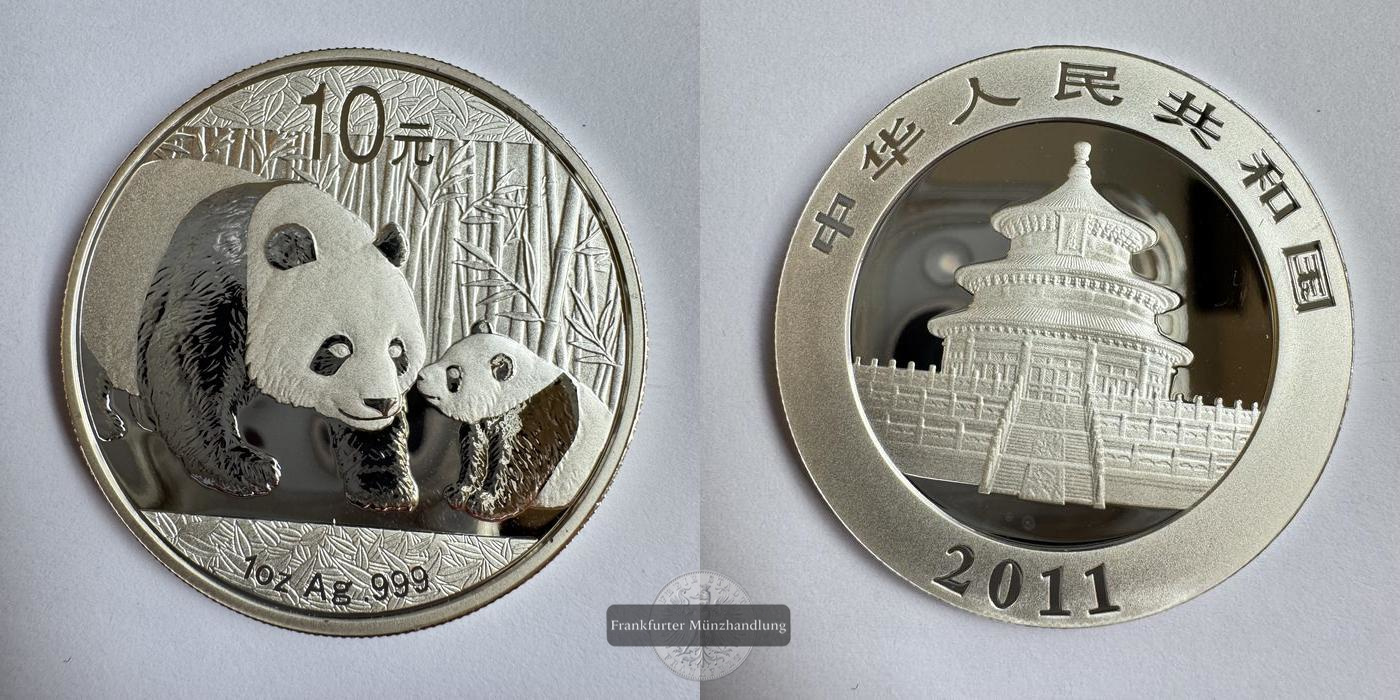 CHINA. Panda 2011, 10 Yuan 1 Unze FM-Frankfurt, Feinsilber: 31,1g