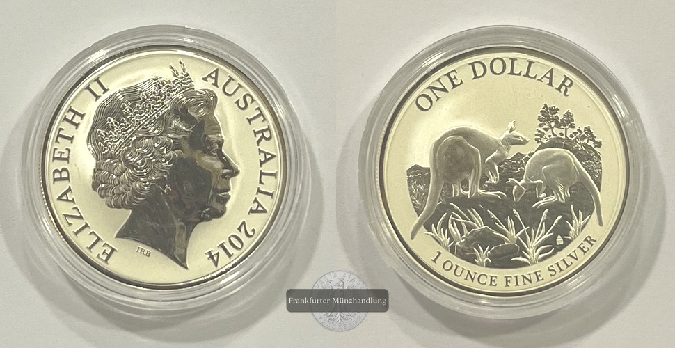AUSTRALIEN. zwei Kängurus 2014, 1 Dollar 1 Unze FM-Frankfurt, Feinsilber: 31,1g