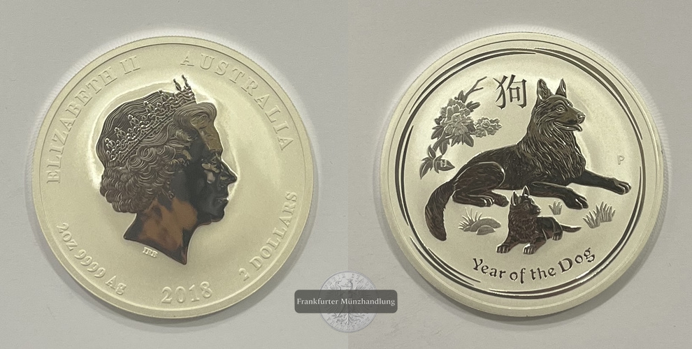 AUSTRALIEN. Jahr des Hundes 2018, 2 Dollar 2 Unzen FM-Frankfurt, Feinsilber: 62,2g