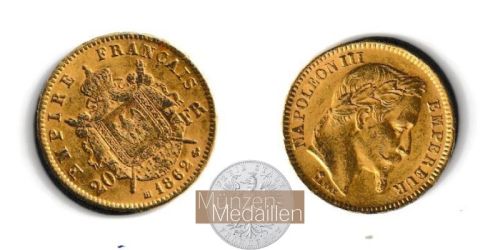 FRANKREICH. Napoleon III. 1852-1870. 20 Francs 1868 BB Münzstätte BB = Strasbourg Gewicht: 6,45g Material: 900/1.000 Gold Feingewicht: 5,81gr. Auflage: 2.907.000 Exemplare E...