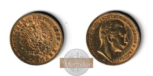 DEUTSCHES KAISERREICH. Preussen, Wilhelm II. 1888-1918 20 Mark 1889 A - Münzstätte Berlin Gewicht: 7,98g Material: 900/1.000 Gold Feingewicht: 7,17g Erhaltung: sehr schön ...