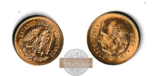 MEXIKO, Bundesrepublik seit 1917 5 Pesos 1955 "Miguel Hidalgo y Costilla - Vater Mexikos" Gewicht: 4,16g Material: 900/1.000 Gold Feingewicht: 3,75g Erhaltung: vorzüglich ...
