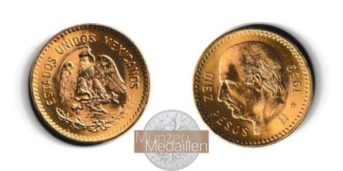 MEXIKO, Bundesrepublik seit 1917 10 Pesos 1959 "Miguel Hidalgo y Costilla - Vater Mexikos" Gewicht: 8,33g Material: 900/1.000 Gold Feingewicht: 7,5g Erhaltung: vorzüglich, ...