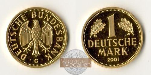 DEUTSCHLAND, Bundesrepublik seit 1949 Goldmark 2001 G - Münzstätte Karlsruhe "Abschiedsmark - Prägung zum Ende der DM-Währung" Gewicht: 12g Material: 999/1.000 Go...