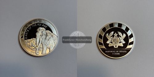GHANA. Riesen der Eiszeit - Wollhaarmammut 5 Cedi Prägejahr: 2019 Gewicht: 31,1g Durchmesser: 38,6mm Material: 999/1.000 Silber Erhaltung: vzgl. (siehe Bild) Zitat: UC#217 ...