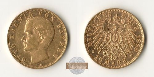 DEUTSCHES KAISERREICH. Bayern, Otto König 1886-1913 10 Mark 1898 D - Münzstätte München Gewicht: 3,99g Material: 900/1.000 Gold Feingewicht: 3,58g Erhaltung: sehr sch...