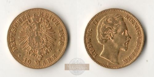 DEUTSCHES KAISERREICH. Bayern, Ludwig II. König 1864-1886 10 Mark 1878 D - Münzstätte München Gewicht: 3,99g Material: 900/1.000 Gold Feingewicht: 3,58g Erhaltung: se...