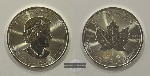 KANADA. Maple Leaf - Zusatz: kleines unterhalb des großen Blattes 5 Dollar Prägejahr: 2020 Gewicht: 31,1g Material: 999/1.000 Silber Erhaltung: vzgl. ohne Kapsel (siehe Bild)...