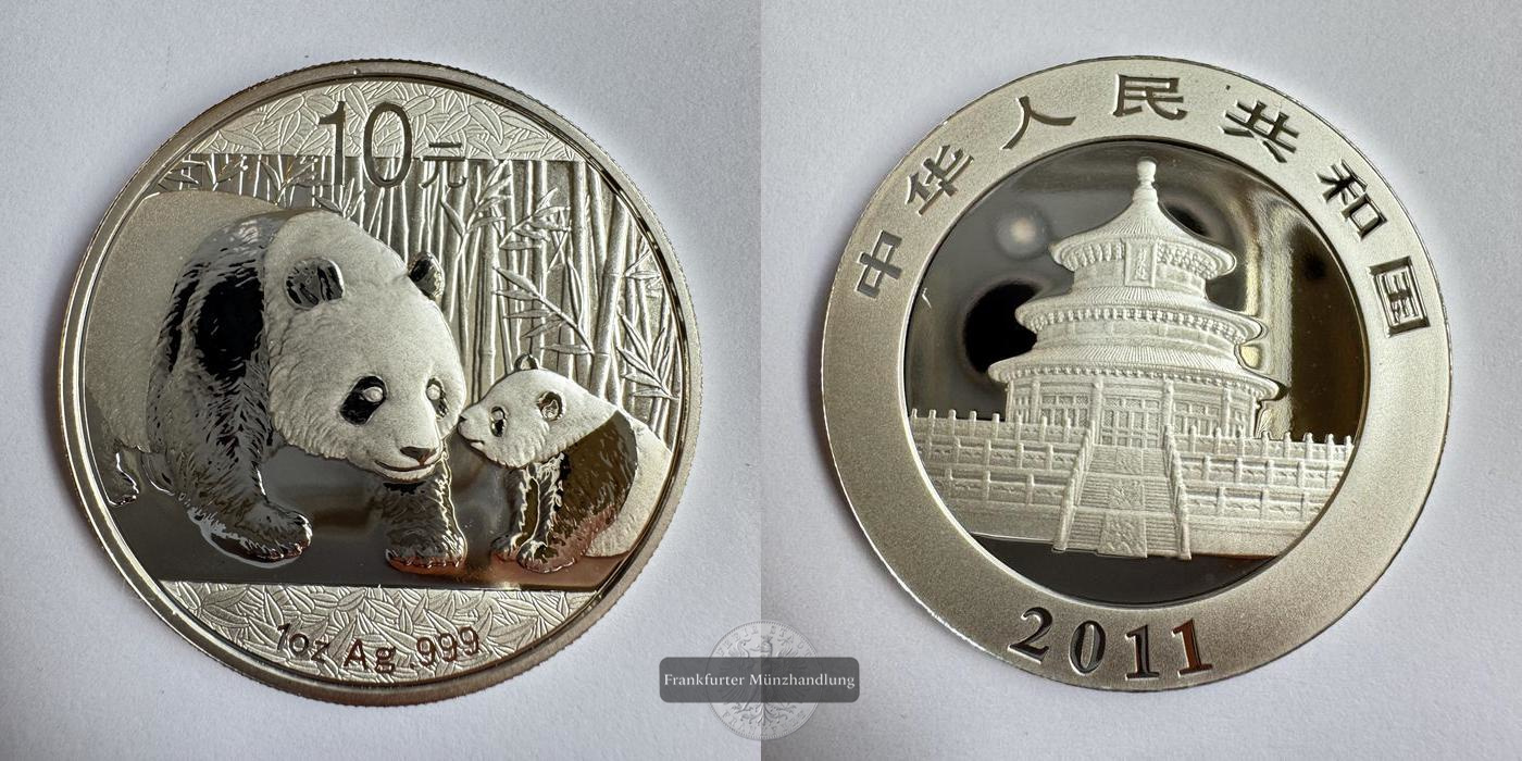 CHINA. Panda 2011, 10 Yuan 1 Unze FM-Frankfurt, Feinsilber: 31,1g