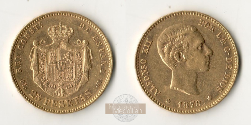 25 Pesetas 1878 D.E. .M. - Münzstätte Madrid