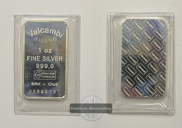 Silberbarren. (Hersteller Valcambi Suisse) FM-Frankfurt, Feingewicht: 31,1g